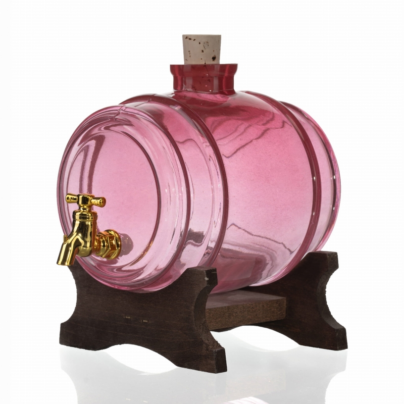 Beczka szklana różowa 1 l z kranikiem + podstawka ciemna