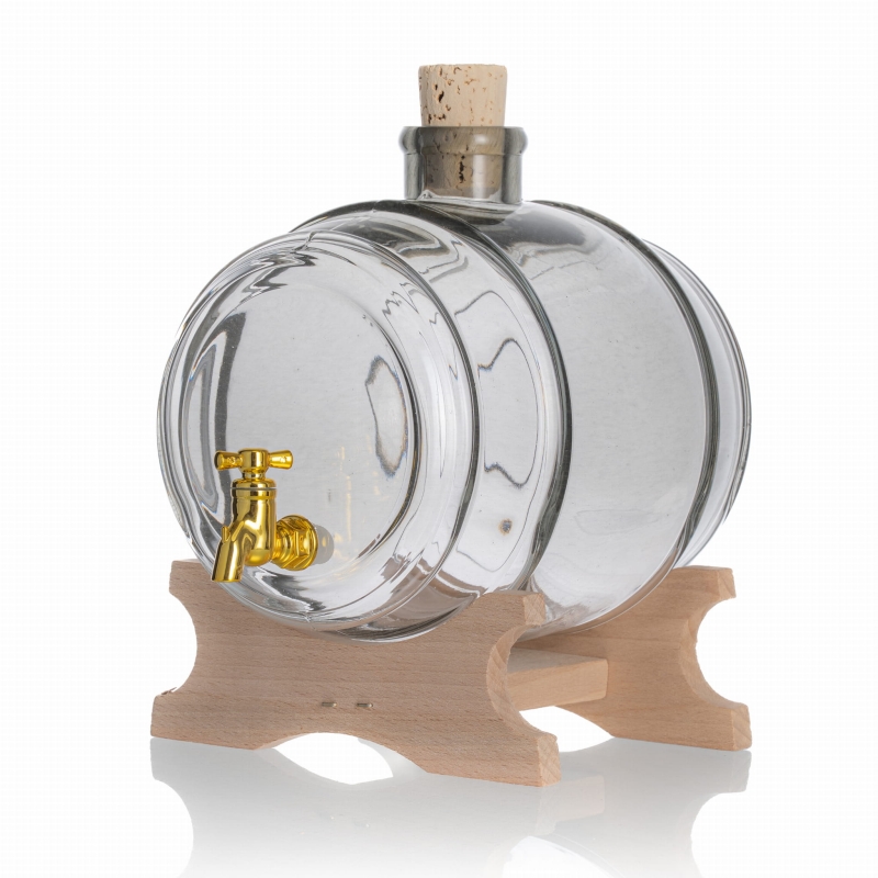 Beczka/ beczułka szklana 1 L z kranikiem + podstawka POPIELATA