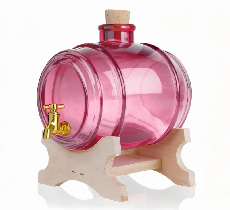 Beczka / beczułka szklana 1 l z kranikiem + podstawka RÓŻOWA