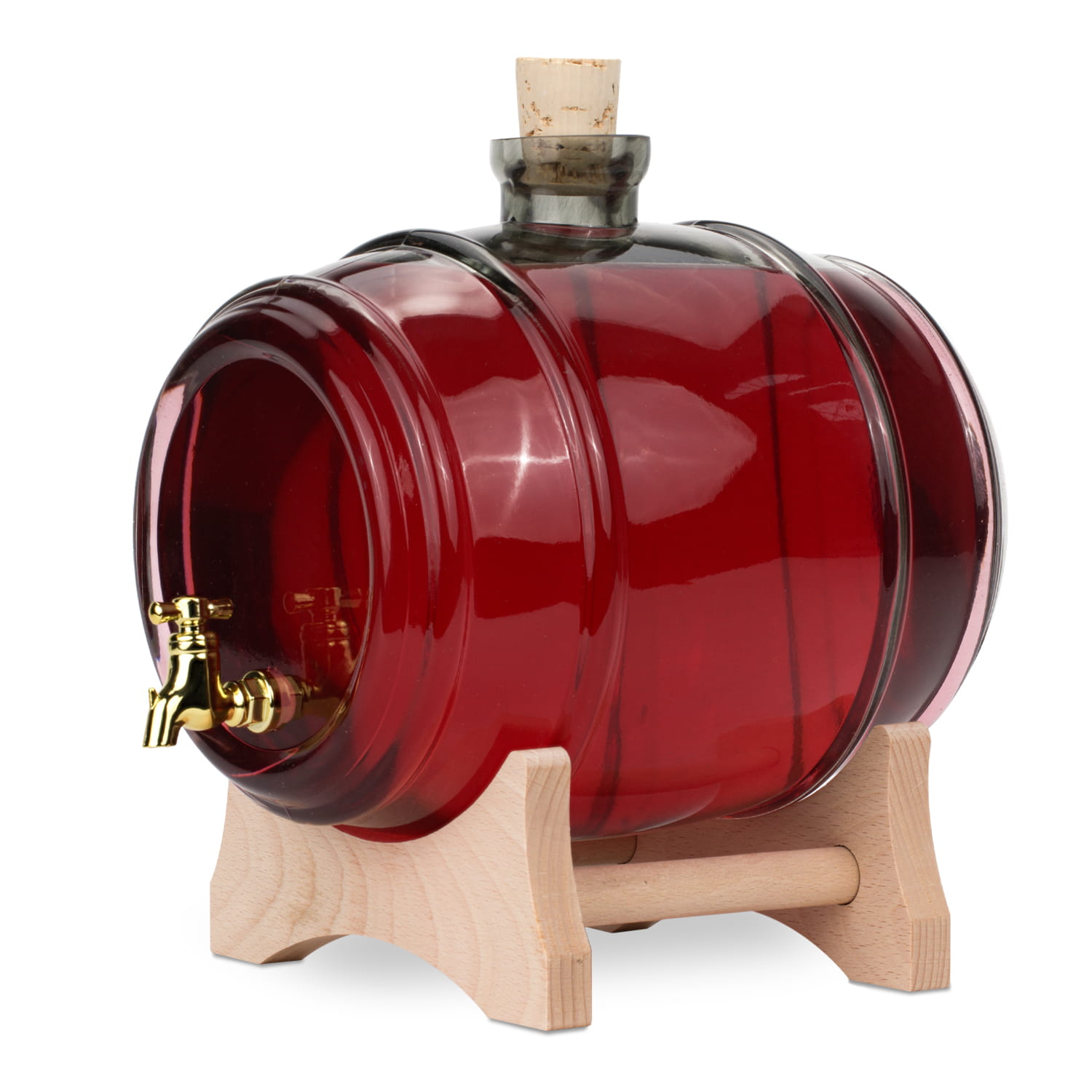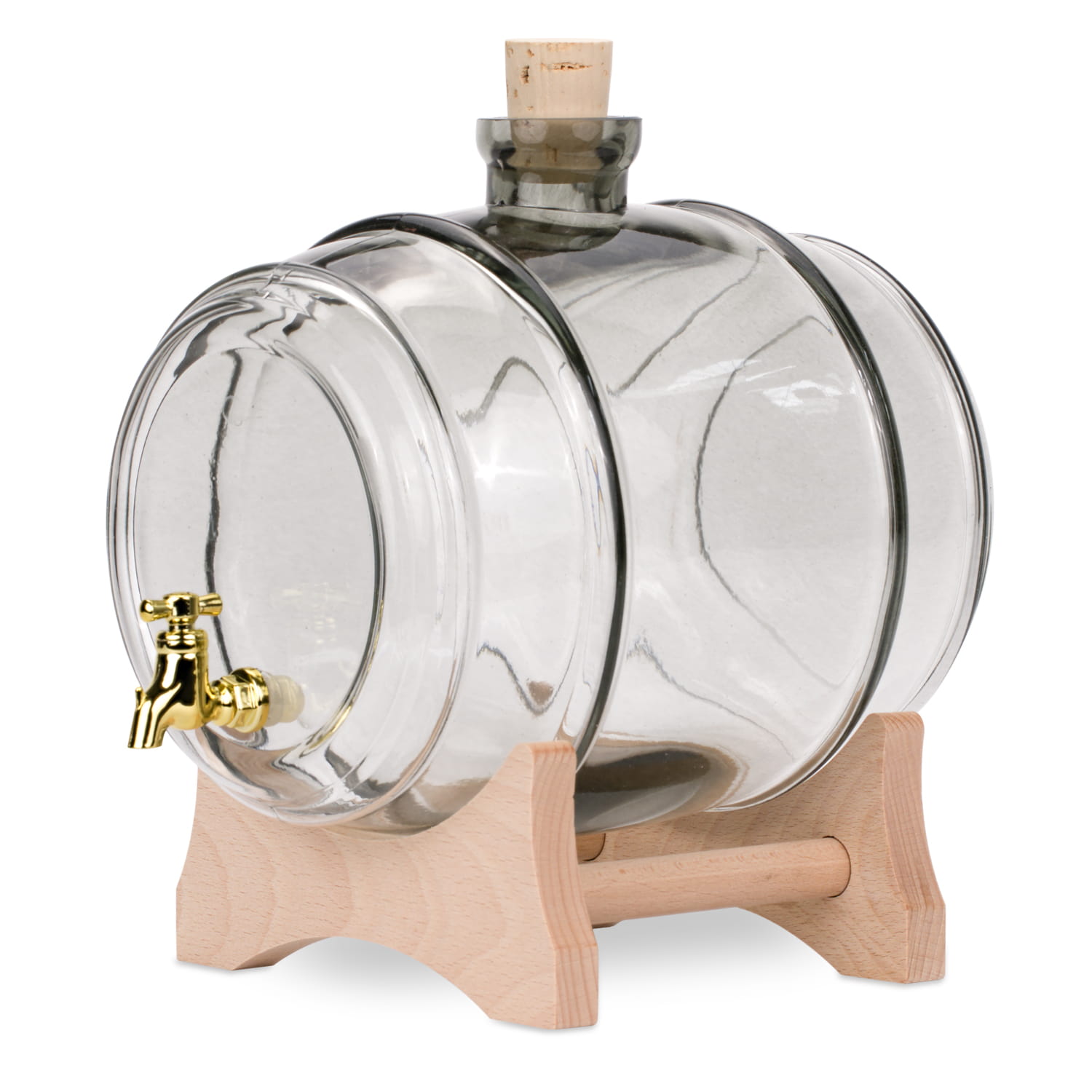 Beczka szklana popielata 2 l z kranikiem + podstawka drewniana