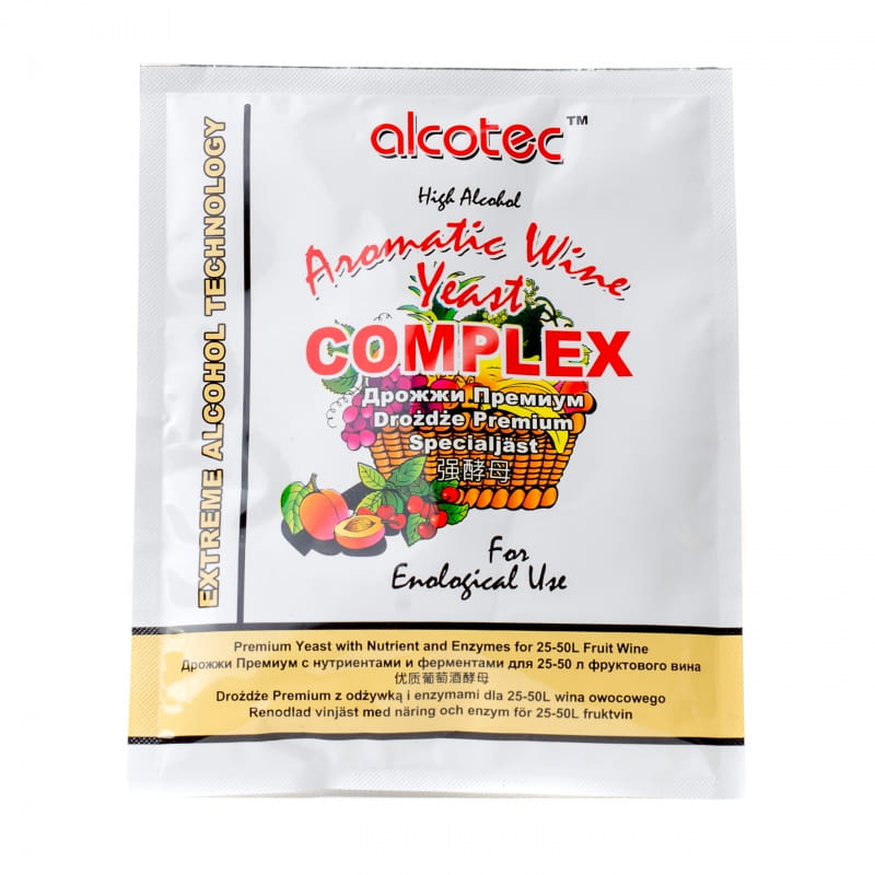 Aromatic Wine Complex to praktyczny zestaw, który zawiera drożdże winiarskie, pożywkę oraz enzym pektolityczny. Jedno opakowanie wystarczy na zaszczepienie 25-50 litrów moszczu owocowego. Te innowacyjne drożdże umożliwiają szybką fermentację, jednocześnie zachowując wysoką jakość finalnego produktu. Są wyjątkowo wygodne w użyciu, nie wymagają sporządzania matki drożdżowej ani nawet uwadniania przed szczepieniem. Dzięki zawartości enzymu rozbijającego pektyny, Twoje wino zyska intensywny kolor, bogatszy aromat i smak, a jednocześnie znacznie lepiej się wyklaruje. Jeśli poszukujesz łatwego rozwiązania, które ułatwi proces produkcji wina, a jednocześnie gwarantuje doskonałe rezultaty fermentacji, Aromatic Wine Complex jest idealnym wyborem.