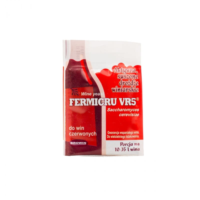 - Jedna paczka wystarcza na przygotowanie 10 - 35 L wina czerwonego, doskonale radzącego sobie z trudnymi fermentacjami i przeznaczonego do długotrwałego leżakowania. Fermicru VR5 skutecznie zapobiega zrzucaniu barwnika. Przechowuj drożdże w chłodnym i suchym miejscu.