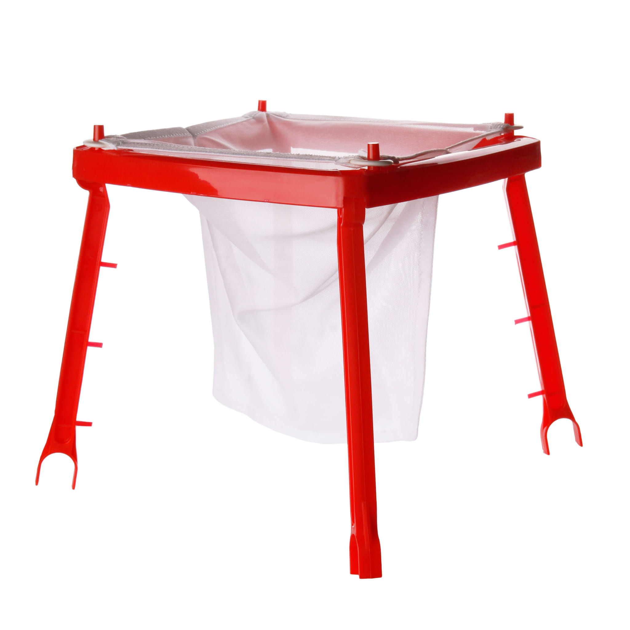 Worek filtracyjny ze stelażem ułatwi skuteczne filtrowanie moszczu, brzeczki i innych cieczy wykorzystywanych w procesie tworzenia trunku. Dzięki zamontowanemu na stabilnym stelażu filtrowi, odcedzisz cenny płyn z niepotrzebnych resztek bez trudu. Stelaż można bezpiecznie przymocować do pojemnika fermentacyjnego, co zapewnia stabilność podczas przelwania cieczy. Ten model stelaża jest idealnie dopasowany do pojemników fermentacyjnych o pojemności 33 litry.